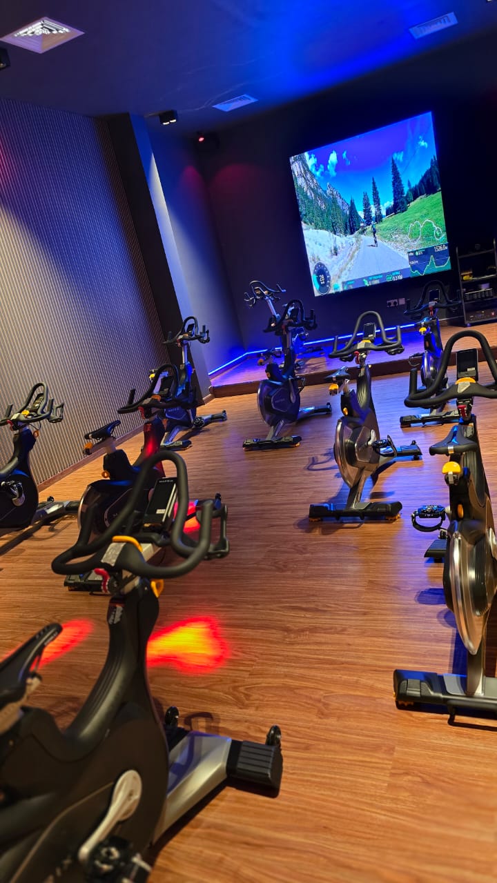 High-energy indoor cycling studio withΒ instructor-led sessions for intense cardio workouts.